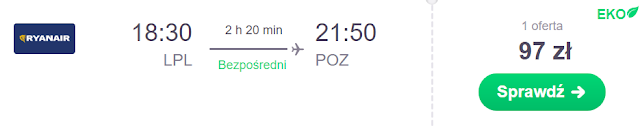 Z Anglii wracamy 1 października. Z portu lotniczego w Liverpoolu dotrzemy do Warszawy za 43 zł* (cena regularna 59 zł) REZERWUJ====>, Katowic za 43 zł* (cena regularna 81 zł) REZERWUJ====> i Poznania za 97 zł REZERWUJ====>.