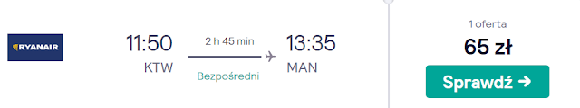 Lot powrotny zaś rezerwujemy na 2 listopada. Z Manchesteru dotrzemy do Wrocławia za 105 zł REZERWUJ====> lub Krakowa za 215 zł REZERWUJ====>.
