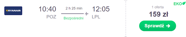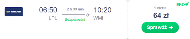 Tego samego dnia z Liverpoolu dotrzemy do Gdańska za 43 zł* (cena regularna 68 zł) REZERWUJ====> i Warszawy Modlin za 64 zł REZERWUJ====>.
