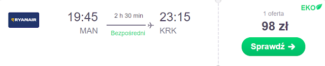 Lot do Polski planujemy na 30 stycznia. Z lotniska w Manchesterze wrócimy do Rzeszowa za 74 zł REZERWUJ====> i Krakowa za 98 zł REZERWUJ====>.