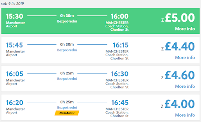 Przejazd z lotniska w Manchesterze do centrum i z powrotem zapewni nam przewoźnik National Express, a ceny podróży w jedną stronę rozpoczynają się od 4 GBP (ok. 20 zł) REZERWUJ====> . Z Liverpoolu do Manchesteru również dotrzemy tym przewoźnikiem od 1.80 GBP (ok. 9 zł) REZERWUJ====>, a z lotniska w Liverpoolu do centrum miasta Beatlesów dowiezie nas komunikacja miejska (linie 86A i 500) za 2,30 GBP (ok. 12 zł).
