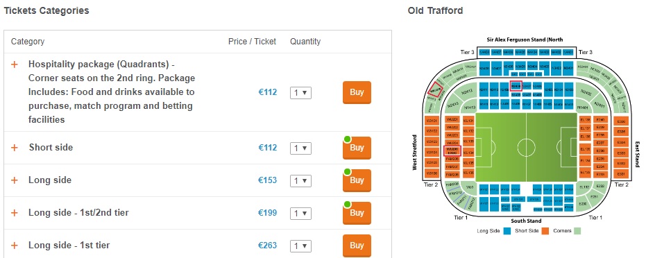 Najtańsze wejściówki zakupimy na rynku wtórnym gdzie cena za pojedyncze bilety zaczyna się od 134€ ( ok. 590 zł) REZERWUJ====>. Uwaga! Bilety dostarczane są na terenie Wielkiej Brytanii dlatego zalecamy powiadomić hotel lub znajomego u którego będziemy nocować o nadejściu przesyłki.