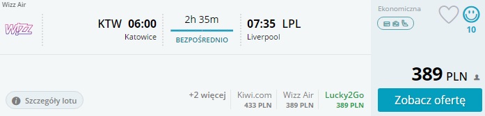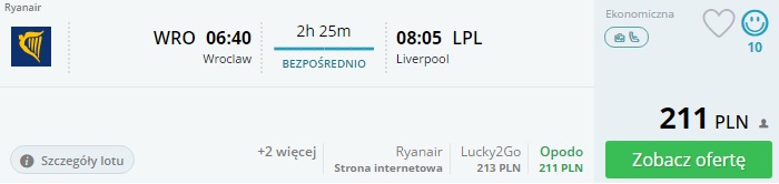 Proponujemy kilka wylotów umożliwiających transport do Manchesteru: dzień przed meczem do Liverpoolu z Warszawy za 193 zł REZERWUJ ==== >, lub Katowic za 344 zł* (cena regularna 389 zł) REZERWUJ ==== >. W dniu meczu możemy skorzystać z wylotu z Wrocławia do Liverpoolu za 211 zł REZERWUJ ==== >.