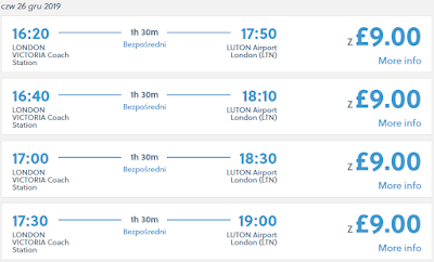Dojazd do centrum miasta i z powrotem z lotniska Londyn-Luton, z którego odbywają się wszystkie proponowane loty możliwy jest przez przewoźnika National Express. Za przejazd w dwie strony zapłacimy 18 GBP (ok. 94 zł) REZERWUJ====>.