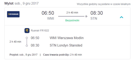 Proponujemy wylot w dniu spotkania 09.12 z Bydgoszczy za 39 zł REZERWUJ====> bądź Warszawy-Modlin za 39 zł REZERWUJ====> . Oba loty bezpośrednio na lotnisko Londyn-Stansted.