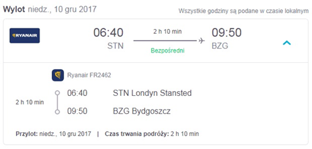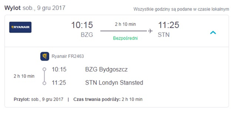 Powrót proponujemy dzień po meczu, czyli 10.12 z lotniska Londyn-Stansted do Bydgoszczy za 100 zł REZERWUJ====> lub z lotniska Londyn-Luton do Gdańska za 129 zł REZERWUJ====>.