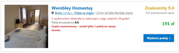 Nocleg proponujemy w położonym nieopodal stadionu w Wembley Homestay. Za pobyt zapłacimy 191 zł w przypadku 1 nocy dla 2 osób (95,5zł/os/noc).