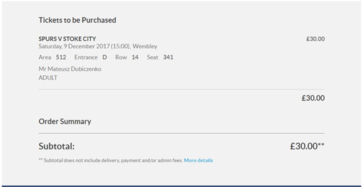 Bilety na spotkanie do nabycia są za pomocą bezpośredniej strony internetowej Tottenhamu – https://www.eticketing.co.uk/tottenhamhotspur/EDP/Event/Index/8210. Najtańsze wejściówki dostępne są od 33,5£ (wraz z opłatą rezerwacyjną), ok. 165zł.
