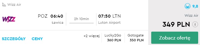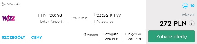 Powrót planujemy dzień po meczu z Luton do Katowic za 237 zł* ( cena regularna 272 zł) REZERWUJ====>, lub do Poznania również za 258 zł* (cena regularna 291 zł) REZERWUJ====>.