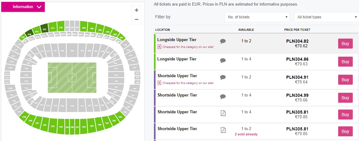 Wejściówki na spotkanie znajdziemy na rynku wtórnym, a najtańsze dostaniemy za ok. 353 zł. Należy pamiętać, że większość ofert dotyczy dostawy biletów tylko na terenie Anglii, więc warto uprzedzić znajomych lub hotel o nadejściu przesyłki. Informację o adresie dostawy można dodać do zamówienia już po opłaceniu biletów. REZERWUJ====>