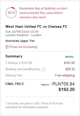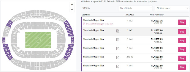 Wejściówki na spotkanie znajdziemy na rynku wtórnym, a najtańsze dostaniemy za ok. 706 zł)  Należy pamiętać, że większość ofert dotyczy dostawy biletów tylko na terenie Anglii, więc warto uprzedzić znajomych lub hotel o nadejściu przesyłki.  Informację o adresie dostawy można dodać do zamówienia już po opłaceniu biletów. UWAGA!!! Nie przechodzimy na polską wersję (Stubhub) a pozostajemy na angielskojęzycznej wersji strony – znajdziemy tam zdecydowanie tańsze bilety! REZERWUJ====>