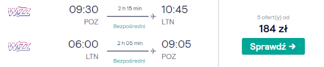 Podróż do stolicy Anglii planujemy w dniach 18-19 stycznia, a bezpośrednie loty w dwie strony zarezerwujemy z: Poznania za 108 zł* (cena regularna 188 zł) REZERWUJ====>, Warszawy za 108 zł* (cena regularna 198 zł) REZERWUJ====>, Wrocławia za 128 zł* (cena regularna 228 zł) REZERWUJ====>, Gdańska za 148 zł* (cena regularna 248 zł) REZERWUJ====> i Krakowa za 174 zł REZERWUJ====>.