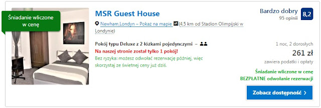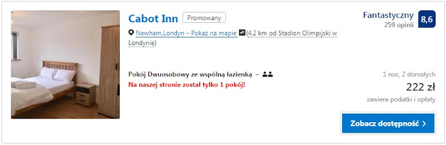 Proponujemy dwie opcje noclegowe nieopodal stadionu, są to: Cabot Inn za 222 zł (111 zł/os/noc) oraz MSR Guest House za 261 zł (131 zł/os/noc).