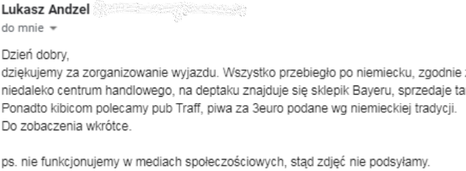 Poniżej relacja słowna od Łukasza. Nasz kibic przy okazji podpowiada również gdzie się napić dobrego, złocistego trunku: