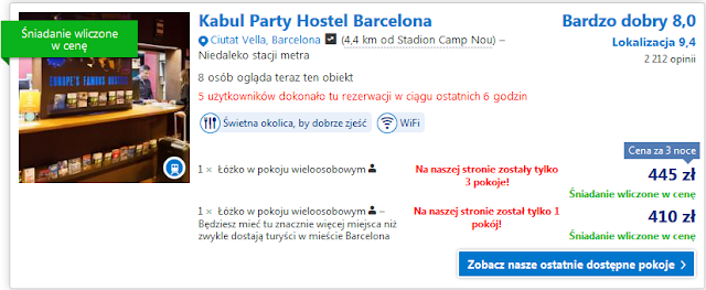 Trzy dni w Barcelonie proponujemy spędzić w Hostelu Kabul Party Hostel Barcelona. Cena za łóżko w pokoju wieloosobowym to koszt 410 zł za trzy noclegi ( ok. 137 zł za noc).