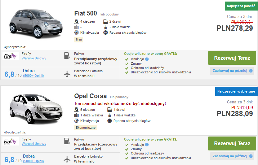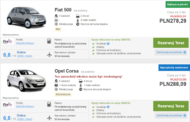 Dla ceniących sobie swobodę w poruszaniu się po miesicie proponujemy wynajem auta na całą dobę. Możemy wskazać dowolne miejsce odbioru i zwrotu auta. Poza dojazdem na mecz możemy skorzystać z tego, że znajdujemy się w pięknej Barcelonie i pozwiedzać miasto. Ceny za wynajem pięcioosobowego auta na trzy dni zaczynają się od ok 288 zł (ok 72 zł na osobę w przypadku grupy czteroosobowej) REZERWUJ====>