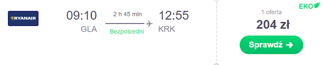 W przypadku powrotu to warto zarezerwować go na 9 grudnia. Za połączenie Glasgow – Kraków zapłacimy 204 zł REZERWUJ====>.