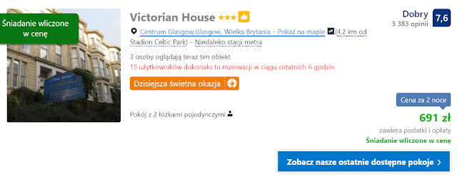 W przypadku jeśli chcemy spokojnie zdążyć na ten mecz proponujemy wylecieć do Glasgow dzień wcześniej – 7 grudnia. Cena za lot z Wrocławia wynosi 73 zł REZERWUJ====>.
