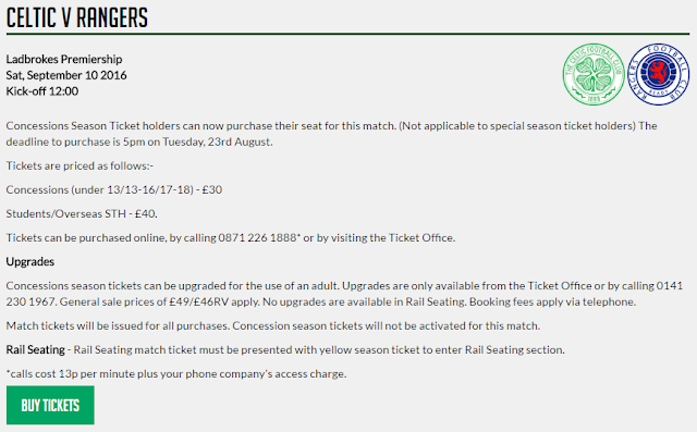 Bilet na mecz zakupimy bezpośrednio na stronie Celticu. Otwarta sprzedaż zaczyna się 23 sierpnia o godzinie 17.00. Warto zatem dodać sobie przypomnienie w swoich terminarzach żeby bilety nie uciekły nam sprzed nosa 🙂 Bilet zgodnie z zapowiedzią kosztować ma kosztuje 49 Funtów https://www.eticketing.co.uk/celtic/details/event.aspx?itemref=7297. Brytyjska prasa sporo rozpisuje o rozczarowaniu kibiców cenami biletów na derbowy pojedynek więc jest szansa, że bilety nie będą rozchodzić się na pniu a tym samym zwiększy się szansa na nabycie takiej wejściówki dla kibiców z Polski.