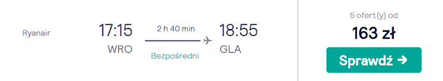 Do Glasgow wylatujemy dzień przed meczem z Warszawy Modlin za 85 zł REZERWUJ====> oraz Wrocławia za 163 zł REZERWUJ====>.