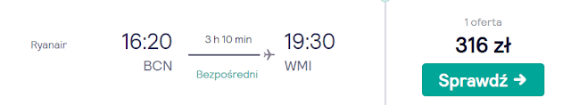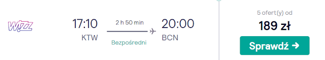 Innym rozwiązaniem jest wylot tego samego dnia do Barcelony z Katowic za 159 zł* (cena regularna 189 zł) REZERWUJ====> oraz Warszawy Modlin za 316 zł REZERWUJ====>.