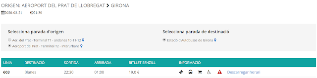 Z portu lotniczego w Gironie do centrum miasta dojedziemy autobusami linii Sagales już za 2,75 EUR (ok. 13 zł) REZERWUJ====>.