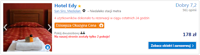 Jeden nocleg w Mediolanie w pokoju dwuosobowym w Hotelu Edy kosztował nas będzie 178 zł(89 zł od osoby za noc).