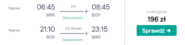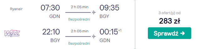 Wyjazd do Włoch rezerwujemy w dniach 1-3 lutego. Za lot do Mediolanu wraz z powrotem zapłacimy 148 zł* (cena regularna 258 zł) wylatując z Warszawy REZERWUJ====>, 196 zł z Warszawy Modlin REZERWUJ====>, 283 zł z Gdańska REZERWUJ====> oraz 300 zł z Krakowa REZERWUJ====>.