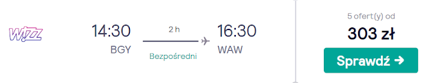 Natomiast z Warszawy Modlin za 125 zł REZERWUJ====>, Wrocławia za 125 zł REZERWUJ====>, Gdańska za 159 zł REZERWUJ====> oraz Krakowa za 163 zł REZERWUJ====> dotrzemy do stolicy Lombardii dzień wcześniej.