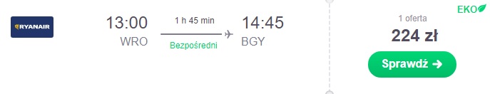 Proponujemy wylot dzień przed meczem z Warszawy do Mediolanu Bergamo za 44 zł* (cena regularna 89 zł) REZERWUJ====> lub z Wrocławia za 224 zł REZERWUJ====>