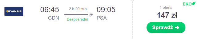 Powrót do kraju rezerwujemy na 12 maja. Oferujemy lot z Pizy do Krakowa za 146 zł (z przesiadką w Wiedniu) REZERWUJ====> lub z przesiadką w Londyn Stansted za 219 zł REZERWUJ====>.