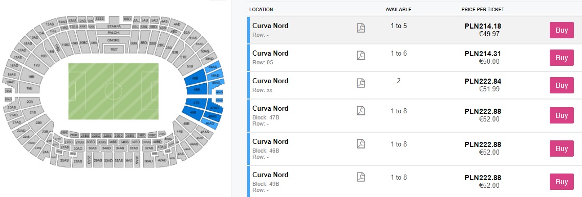 Obecnie bilet na mecz można zakupić na rynku wtórnym już od 257 zł REZERWUJ====>