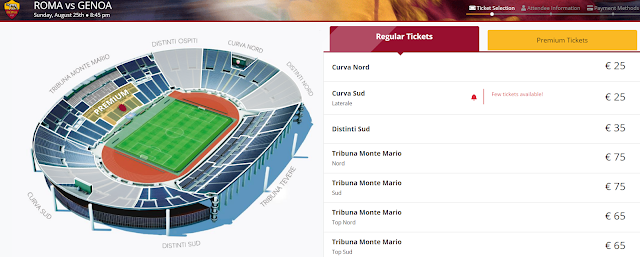 Wejściówki nabędziemy na oficjalnej stronie AS Romy. Ceny biletów wraz z opłatą rezerwacyjną rozpoczynają się od 25,75 EUR (ok. 116 zł) REZERWUJ====>.