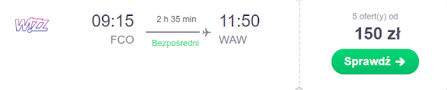 Lot powrotny planujemy na 3 grudnia. Za połączenie Rzym – Fiumicino – Warszawa zapłacimy 107 zł* (cena regularna 150 zł) REZERWUJ====>.