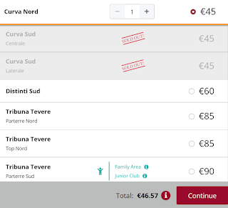 Bilety zakupimy na oficjalnej stronie AS Romy. Ceny wraz z opłatą rezerwacyjną rozpoczynają się od 46,57 EUR (ok. 200 zł) REZERWUJ====>.