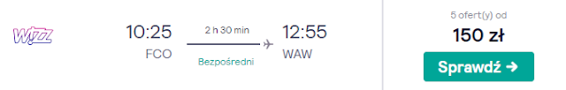 W dniu meczu wylatujemy do stolicy Włoch z samego rana z Warszawy za 69 zł* (cena regularna 119 zł) REZERWUJ====> lub z Katowic za 99 zł* (cena regularna 149 zł) REZERWUJ====>.
