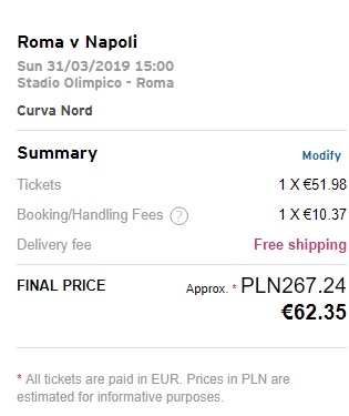 Obecnie bilet na mecz można zakupić na rynku wtórnym już od 268 zł REZERWUJ====>