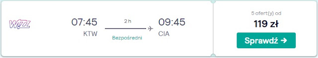 Wylot do stolicy Italii proponujemy jeszcze w dniu spotkania 23.02 z samego rana. Bezpośrednio dostaniemy się tam wówczas z Katowic do portu Rzym Ciampino za 69 zł* (cena regularna 119 zł) REZERWUJ====> oraz z Warszawy do portu Rzym Fiumicino za 69 zł* (cena regularna 119 zł) REZERWUJ====>