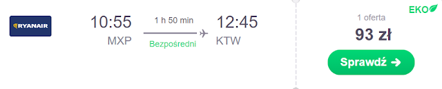 Alternatywą pozostaje lot z Mediolan Malpensa do Katowic za 93 zł REZERWUJ====>.