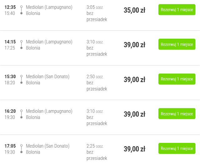 W przypadku gdy lądujemy w Mediolanie do Bolonii możemy się dostać Flixbusem w cenie od 35 zł REZERWUJ====>.