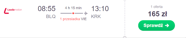 Do Polski możemy wrócić wprost z portu lotniczego w Bolonii dzień po meczu. Za bilet do Krakowa (z przesiadką w Wiedniu) zapłacimy 165 zł REZERWUJ====>.
