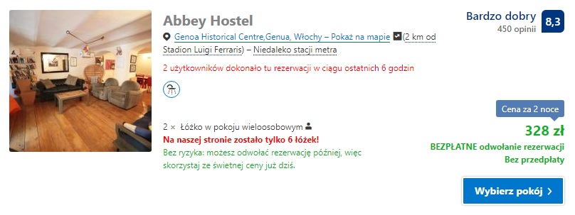 W przypadku dwóch noclegów proponujemy obiekt Abbey Hostel gdzie za pokój dwuosobowy zapłacimy 328 zł ( 82 zł/os./noc + 3€ podatku miejskiego na osobę). Jeden nocleg również możemy spędzić w Abbey Hostel. W tym przypadku za nocleg zapłacimy połowę mniej.