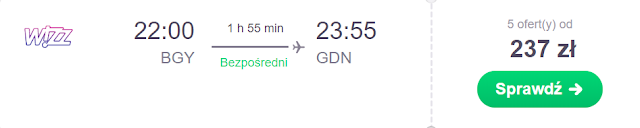 Powrót proponujemy dzień po meczu – 22 października. Za bilet do Warszawy Modlin z lotniska Mediolan Bergamo zapłacimy 132 zł REZERWUJ ====>, zaś do Gdańska za 172 zł* (cena regularna 237 zł) REZERWUJ ====>