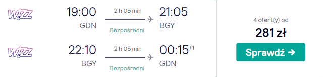 Z portu lotniczego Bergamo do centrum Mediolanu dojedziemy dzięki liniom przewozowym Terravision. Za przejazd w obie strony zapłacimy 12 EUR (ok. 54 zł) REZERWUJ====>.