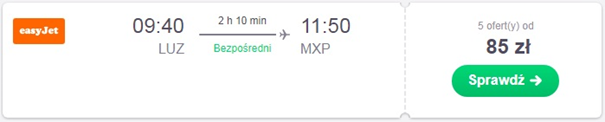 Dwie inne opcje zakładają lądowanie na lotnisku Mediolan-Malpensa, przy wylocie z Katowic za bilet zapłacimy 34 zł REZERWUJ ====>, a z Lublina 85 zł. REZERWUJ ====>