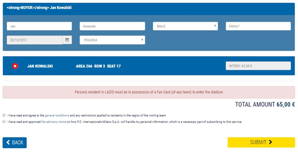 Wejściówki na spotkanie dostępne są za pośrednictwem oficjalnej strony internetowej Interu Mediolan – http://www.inter.it/it/biglietteria. Do zakupu biletu niezbędna jest darmowa rejestracja, a wejściówkę otrzymamy w formie elektronicznej. Za bilet na mecz z AS Romą zapłacimy od 65 EUR (ok. 270 zł). REZERWUJ====>