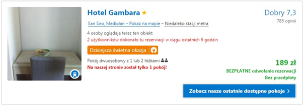 Proponujemy nocleg w niedalekim sąsiedztwie San Siro i stacji metra. Zarówno za Hotel Emmy, jak i Hotel Gambara zapłacimy już 189 zł za pokój dwuosobowy (ok. 95 zł/os/noc).