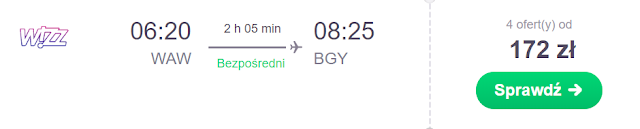 Lot do Polski planujemy na 11 marca. Z portu lotniczego Mediolan Bergamo dolecimy bezpośrednio do Wrocławia REZERWUJ====> oraz Warszawy Modlin REZERWUJ====> za 122 zł.