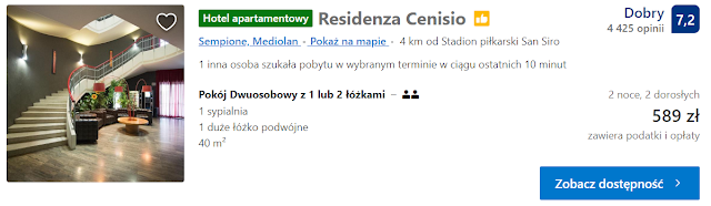 Alternatywą może być Residenza Cenisio, gdzie za pobyt w pokoju dwuosobowym zapłacimy 589 zł (ok. 147,5 zł os./noc).