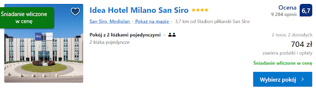 Proponujemy dwudniowy pobyt w Idea Hotel Milano San Siro, który oferuje nocleg w cenie 585 zł za jedną oraz 704 zł za dwie osoby (176 zł os./noc).
